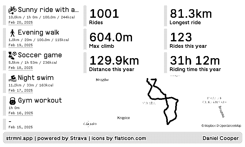 Strava activities and riding stats. Maps included.